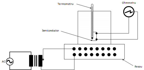Figura 2. Circuitul utilizat pentru măsurarea rezistenței semiconductorului în funcție de temperatură
