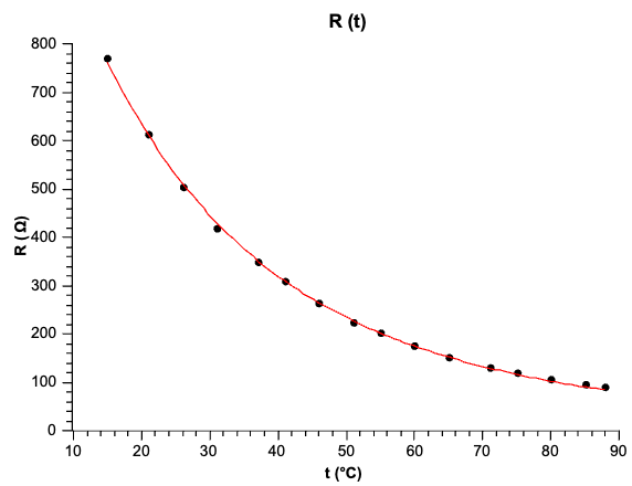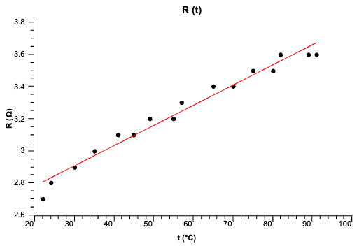 Observam  că pentru conductorul metalic valoarea obținută pentru coeficientul de temperatură coincide cu valoarea cunoscută pentru metalul Wolfram:  (la 20 , conform tabelelor).