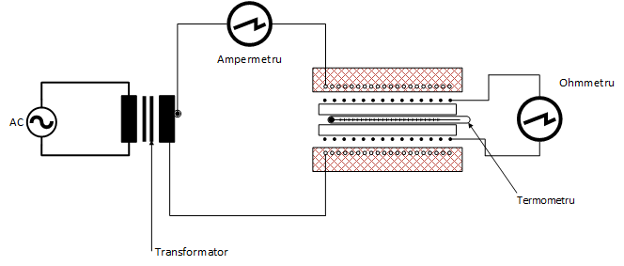 Figura 1. Circuitul utilizat pentru măsurarea rezistenței metalului în funcție de temperatură
